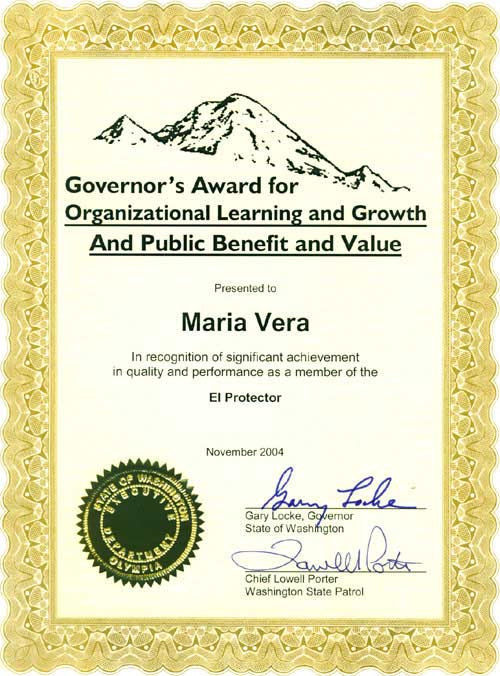 “Maria is always willing to take on and successfully handles new responsibilities and challenges. In the 7 years we have known each other, she routinely demonstrated a positive attitude and problem solving ability. Maria is a skilled trainer and facilitator and good communicator. When serving on statewide groups, she clearly articulates the needs, desires and concerns of those in her community.”